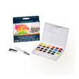 The Derwent Inktense Paint Pan Sets contains the unique Inktense formulation found in the Derwent Inktense pencil and block ranges. Unlike traditional watercolour, washes of vivid paint can be applied without dissolving previously dried layers.